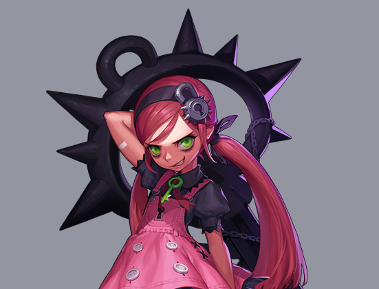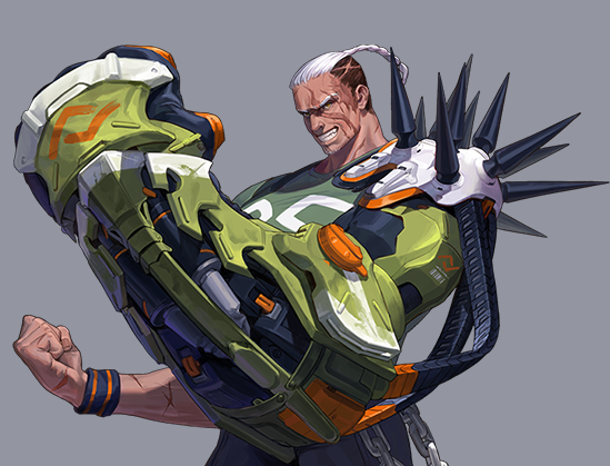 팔에 거대한 건틀렛을 착용하고 있는데, 공격 무기라기 보다는 의도치 않은 폭발을 막기 위한 장치.