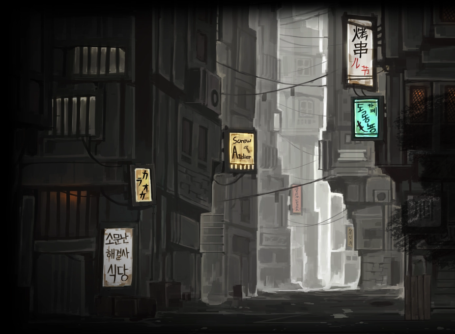 둥지와는 달리 안전을 보장받을 수 없는(그렇다고 둥지가 반드시 안전하다고는 할 수 없지만요) 위험한 지역입니다. 둥지 안까지도 혈관과 같이 도시 곳곳에 촘촘히 퍼져 있지만 경계는 명확히 구분되어 있죠. 무법지대처럼 보일 수도 있지만 뒷골목마다 고유한 금기도 확립되어 있으며 다양한 문화권이 구축된 곳입니다. 도시 사람들끼리 뭉쳐 조직을 구성하기도 하는데 그 수와 규모는 각지각색이라고 합니다.