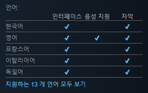 한국어가 모두 지원되므로 걱정없이 플레이하실 수 있을거 같네요.