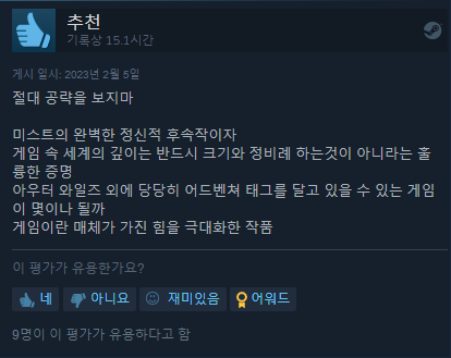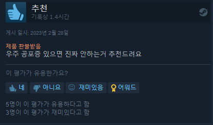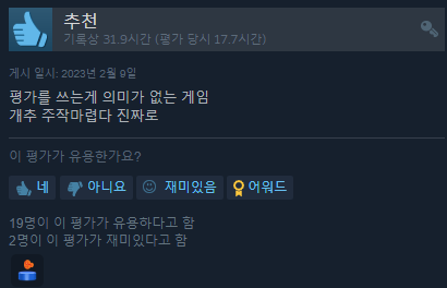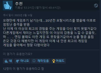 스팀 평가 역시 압도적으로 긍정적 , 매우 긍정적 평가를 받으면서 호평을 받는 데 성공했습니다.