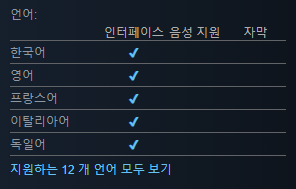 한국어 역시 지원되어 안심하고 게임을 즐길 수 있을것 같네요.