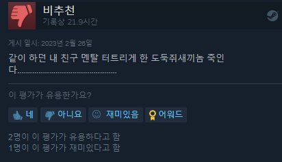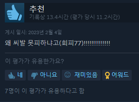 스팀 평가도 매우 긍정적이구요.