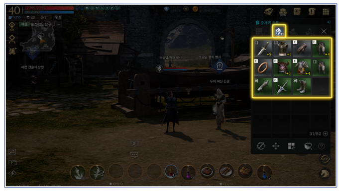 - 강화 : 장비 강화 화면으로 이동합니다.