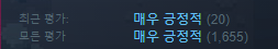 스팀 평가는 매우 긍정적으로 좋은 반응을 얻었습니다.