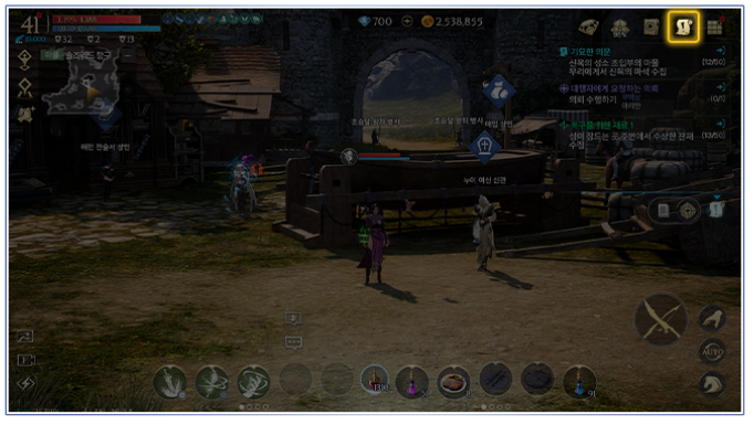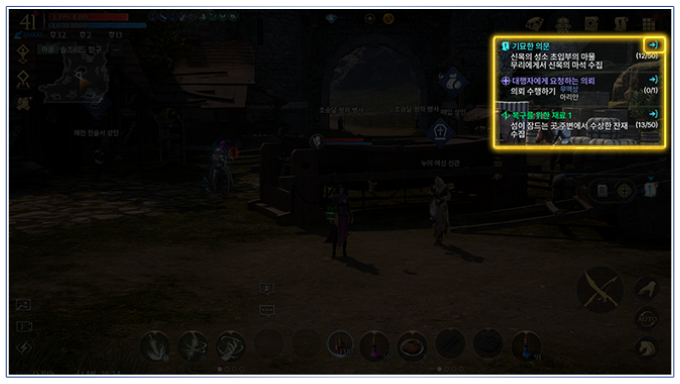 게임 화면 우측 상단 - 퀘스트를 차례로 눌러주세요