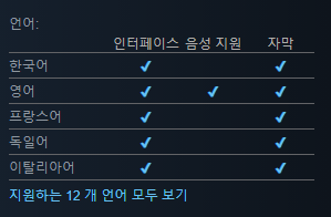 한국어 자막과 인터페이스가 지원되어 편리하게 게임을 즐길 수 있을것 같아요.
