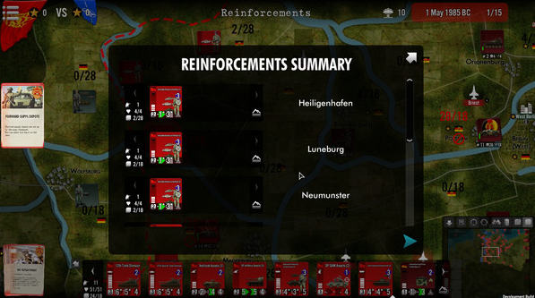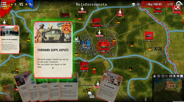 플레이어들은 대부분 카드를 사용하거나 이벤트가 발생함에 따라 중유럽에서 벌어지는 자세한 군사 작전과 전투(육상전과 공중전 모두)에 참여할 뿐만 아니라, 다른 지역(발칸 반도, 스칸디나비아, 중동, 극동 등)에서 벌어지는 군사적, 정치적, 외교적 측면을 경험할 것입니다.