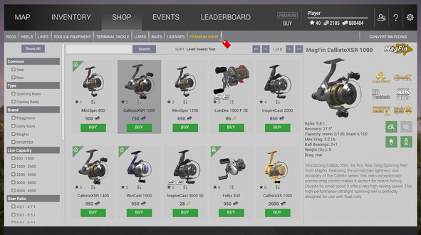 고유한 물리적 특성과 유체역학적 특성을 지닌 수천 가지 태클과 미끼 조합. 실제 물고기 행동을 기반으로 한 각 종의 미끼 공격에 대한 사실적인 물기와 타격 반응.
