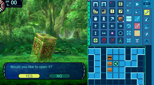 미궁에서는 다양한 지형이 모험가를 맞이한다. 통과할 수 있는 지름길이나 유용한 채취물의 존재인 보물상자를 지도에 그려 너희만의 지도와 함께 모험을 하자