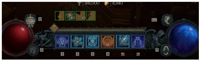 보스전 스킬 슬롯입니다. 이렇게 구성하고 마법부여로는 화염탄과 화염 보호막을 사용하시면 됩니다.