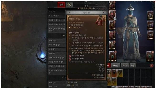 마지막으로 바지에서는 왜 방어력 옵션을 챙겼는지 궁금하실 것 같은데요. 최소한의 방어 옵션과 위상을 이용해서 쫄몹의 일반 공격 정도는 버틸 수 있게 하려고 저 바지를 채용했습니다.
