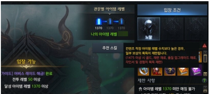 카양겔과 혼돈의 상아탑, 군단장 레이드의 경우 레벨 달성에 따른 보상제한이 존재하지 않지만, 엔드 콘텐츠가 아닌 어비스 던전과 어비스 레이드는 레벨 달성에 따른 보상 제한이 존재합니다.