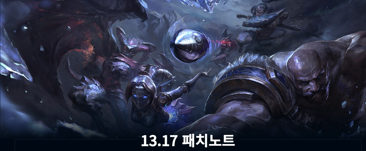 8월 30일 수요일, 리그 오브 레전드 한국 서버에 13.17 패치가 적용되었습니다. 이번 패치로 트린다미어의 공격 사거리가 증가하고, 랭크 게임에서 지나치게 높은 승률을 기록하고 있는 나피리의 하향이 적용됩니다. 한편 이번 패치 기간 중 우주(Cosmic) 스킨 4종과 신화급 변형 암흑 우주 말살 진 스킨이 출시될 예정이며, 9월 7일 오전 5시부터 2주 동안 파랑 정수 상점도 오픈됩니다.