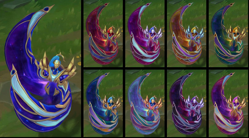 이번 13.17 패치 기간 중에는 우주(Cosmic) 스킨이 4종 추가됩니다. 우주 스킨은 이름처럼 우주 테마를 반영한 스킨으로, 전반적으로 검푸른 색상의 디자인과 스킬에 우주와 관련된 이펙트를 표현한 점이 특징입니다. 이번에 추가되는 스킨의 주인공은 노틸러스, 벨베스, 사이온, 누누와 윌럼프 4명입니다.