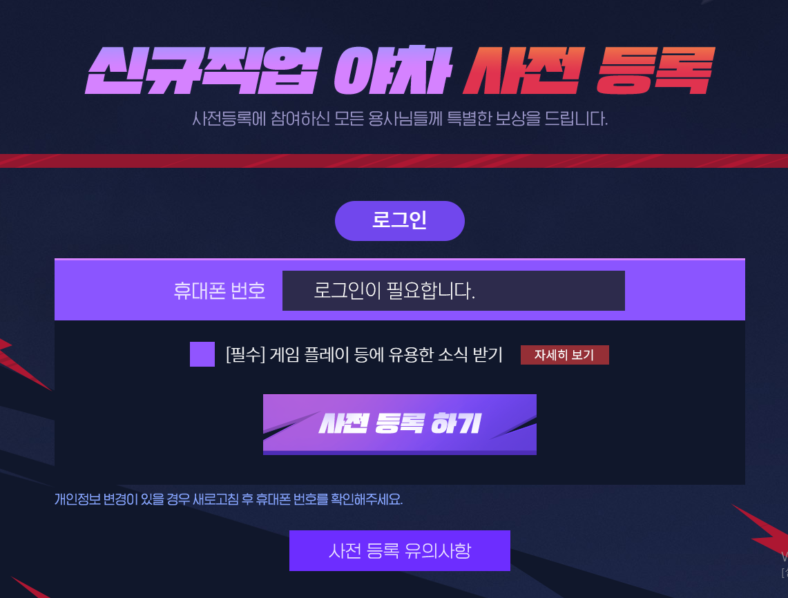 신규직업 야차 사전 등록을 할 수 있어요.