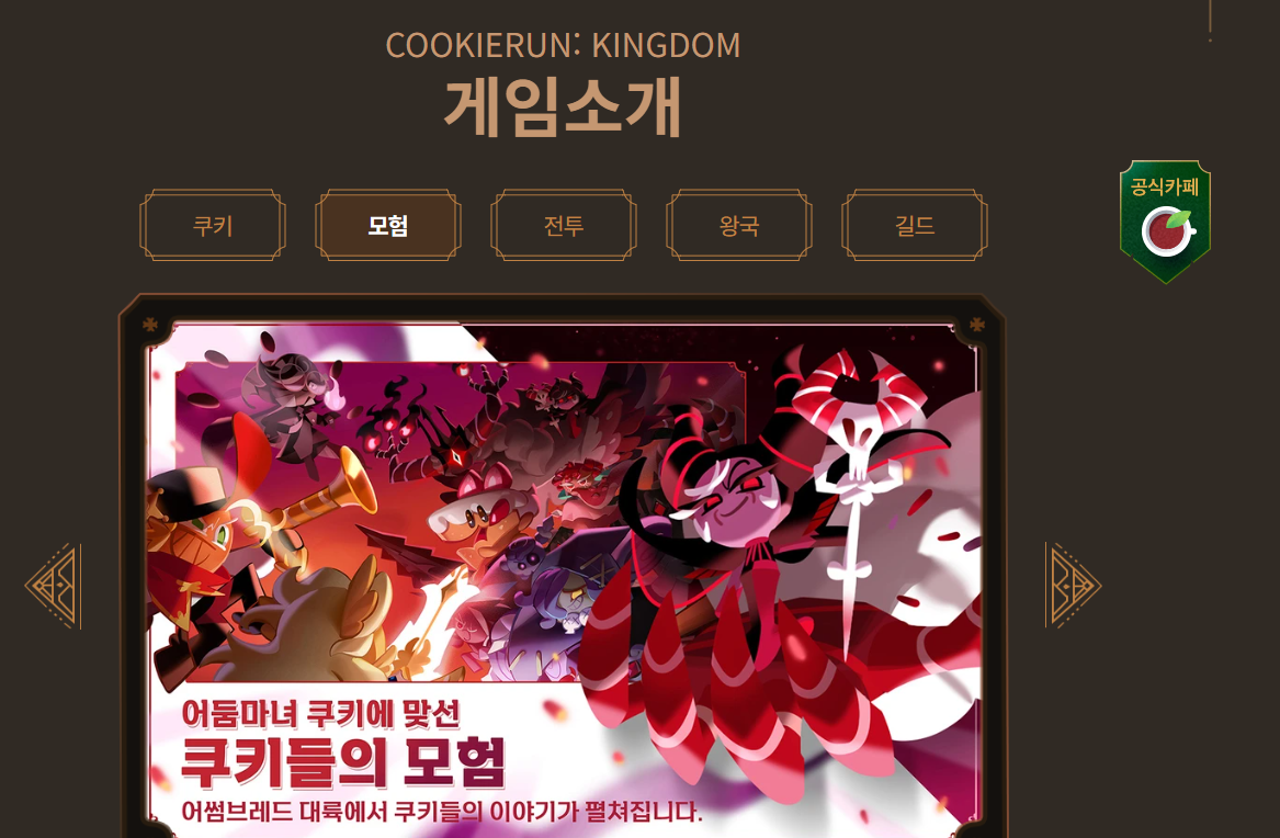 | 스튜디오 킹덤 웹사이트 게임 페이지 방문 선물 쿠키런: 킹덤 - STUDIO KINGDOM |