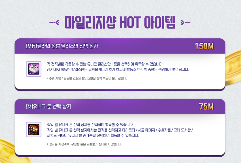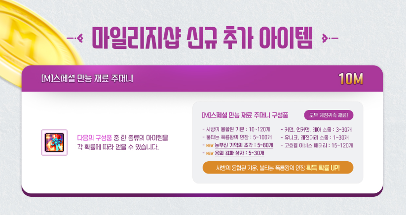이벤트 성 마일리지 지급 아이템은 별도입니다.