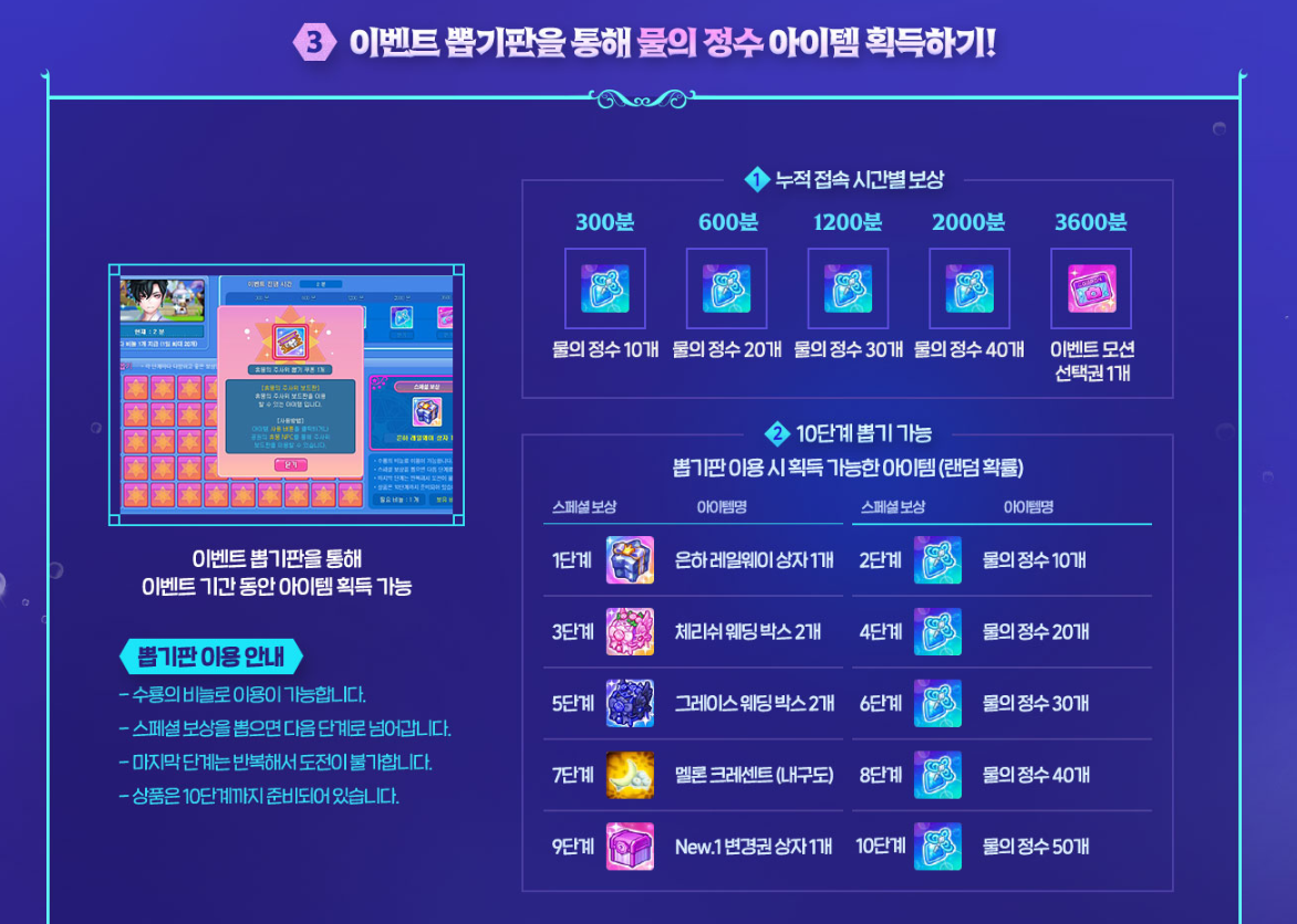 이벤트 뽑기판을 통해 물의 정수 아이템 획득하기