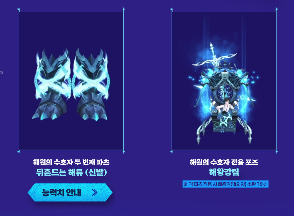 각 파츠 착용 시 해왕강림(의자) 소환 가능