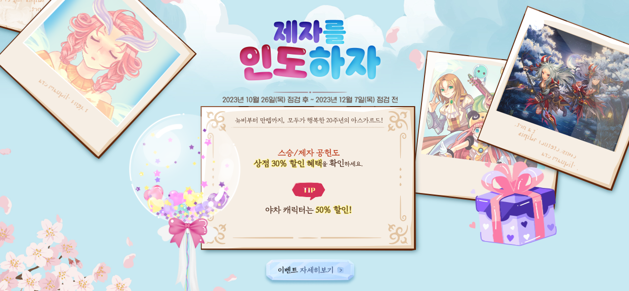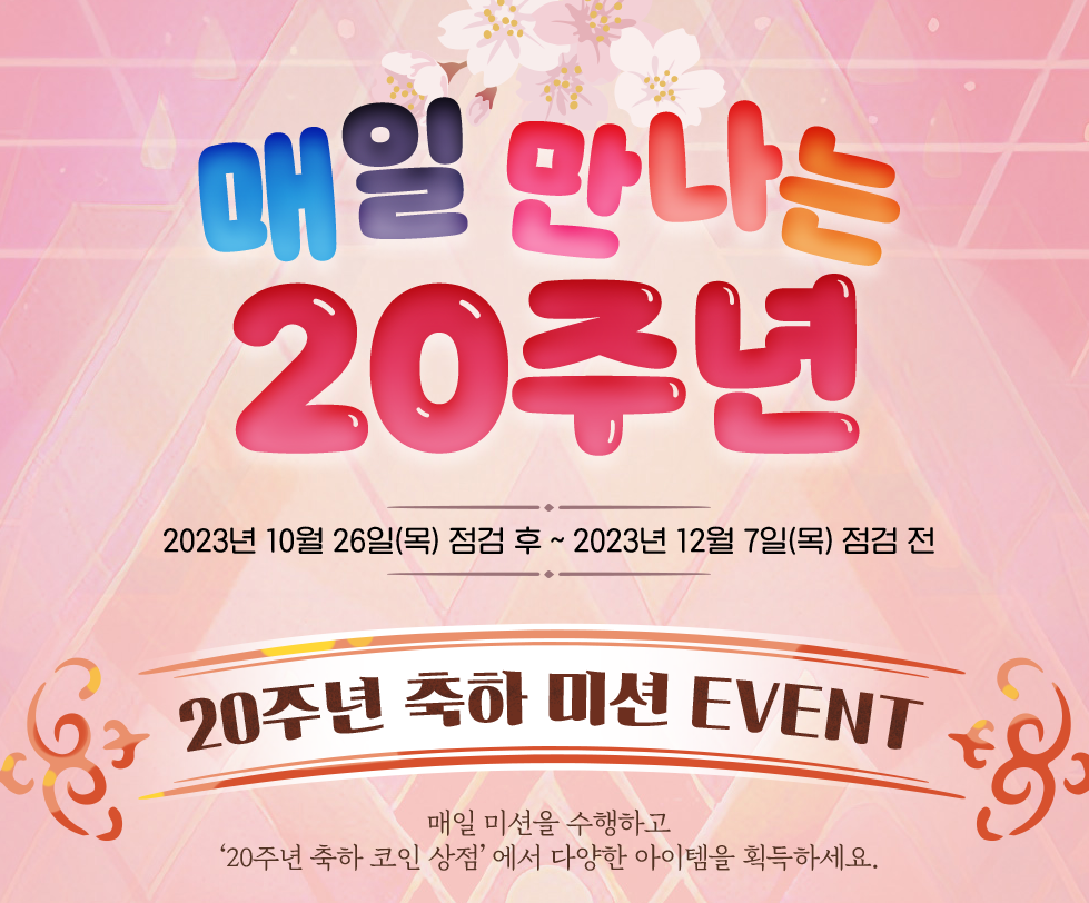 2. 20주년 축하 코인 상점은 2023년 12월 7일(목) 정기점검 전까지 이용할 수 있습니다.