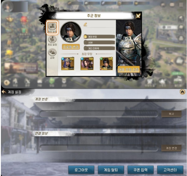 쿠폰입력은 홈페이지 또는 게임 내 프로필- 계정설정 버튼을 누르셔서 입력하시면 됩니다!