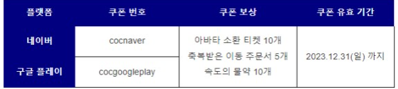 마지막으로 콜오브카오스:어셈블 쿠폰 정보입니다.