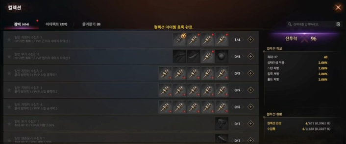 장비와 아바타 강화도 중요하지만 컬렉션도 상당히 중요한 요소이니 무조건 장비를 분해하기보다는