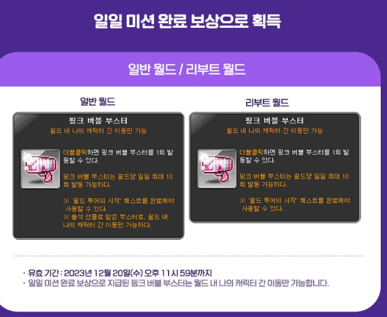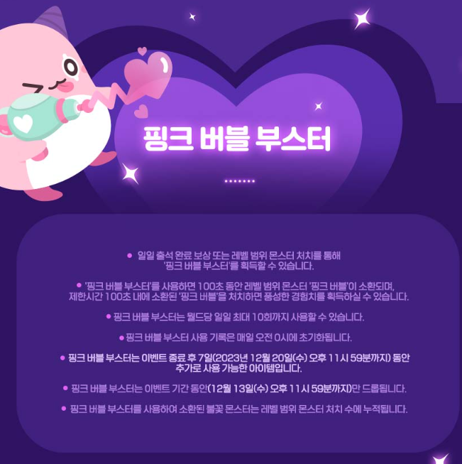 핑크 버블 부스터는 이벤트 종료 후 7일(2023년 12월 20일(수) 오후 11시 59분까지) 동안 추가로 사용 가능한 아이템입니다.