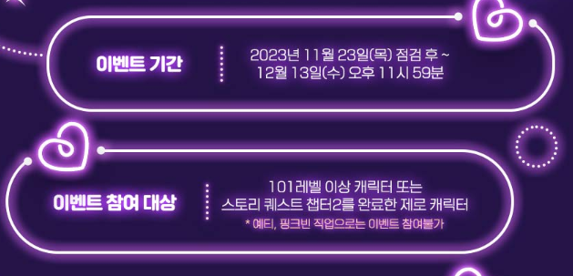 이벤트 참여 대상은 101 레벨 이상 캐릭터 또는 스토리 퀘스트 챕터 2를 완료한 제로 캐릭터입니다.