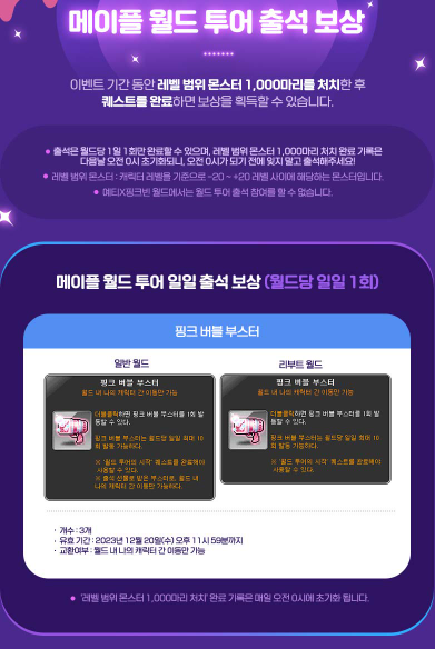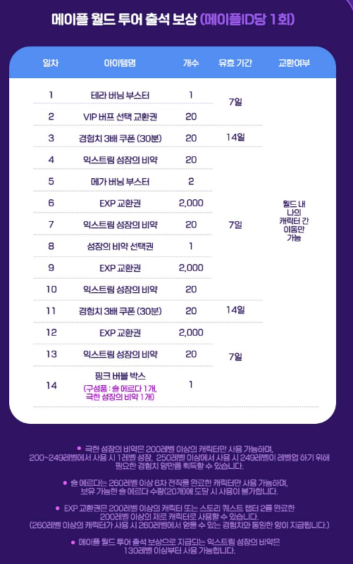 안녕하세요 오늘은 메이플스토리 월드 투어 이벤트 보상 정보에 대해 알려드리겠습니다.