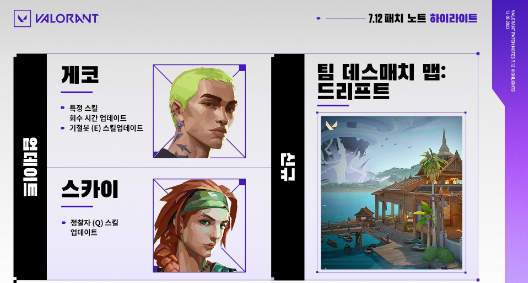 팀데스 매치의 신규 맵인 드리프트가 출시되었다고 합니다. 기존 맵들과는 다르게 시원하게 뻥 뚫린 미드와 양쪽 사이드는 미드와 거의 분리되어 있어서 그들만의 리그를 펼칠 수 있다고 합니다.