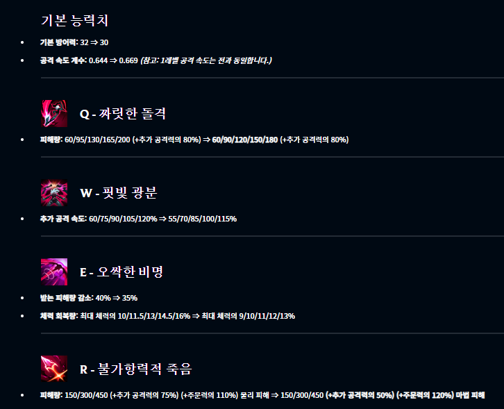 먼저 챔피언 변경사항부터 알려드리겠습니다.