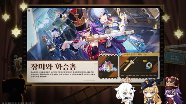 스팀버드 보도에 따르면 최근 폰타인의 뜨거운 분위기가 심상치 않다고 합니다. 페이몬의 제안에 따라 축제 행사장으로 온 여행자 일행. 이곳에서 옛 친구와의 재회를 시작으로 기묘한 경험의 막이 올라갈 예정입니다. 이벤트 참여 시 양손검 '슈퍼 울트라 패왕 마검'과 '반짝이는 슈퍼 무적 마법 수정'을 얻습니다.