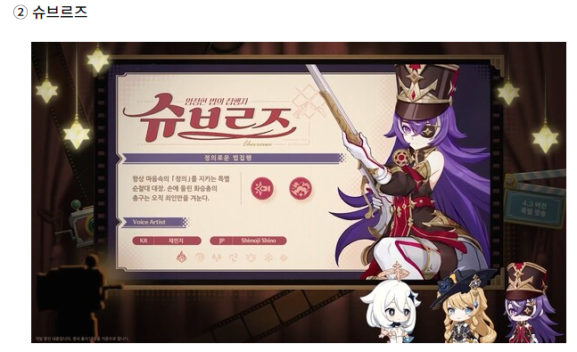 신규 캐릭터인 슈브르즈가 추가될예정입니다.