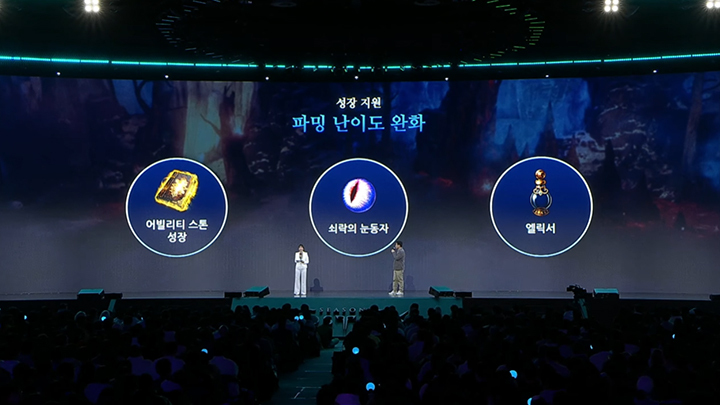 파밍 난이도 역시 완화됩니다. 카양겔 대표 보상인 어빌리티 스톤 성장 재료의 습득 확률이 3배가량 상향됩니다. 일리아칸 대표 보상인 쇠락의 눈동자는 아크투르스 손길 버프가 확대 적용됩니다. 볼다이크 대표 보상인 엘릭서는 지혜의 정수로 제작 가능한 개수를 10개로 늘렸습니다. 존재감이 희미하던 영웅 엘릭서의 경우 연성 비용을 절반 이하로 대폭 낮췄습니다.