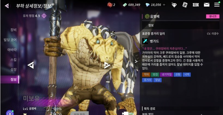 '음벰베'는 베드로 팩션에 소속된 유니크 등급 부하로 표준형 중거리 딜러로 분류됩니다.