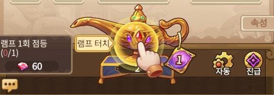 램프를 터치하여 장비를 획득할 수 있습니다. 장비를 판매하여 골드와 경험치를 획득할 수 있습니다.