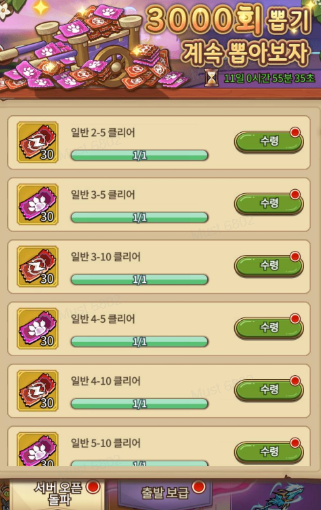 뽑기권을 얻기 위해서는 3000회 뽑기의 퀘스트를 클리어해야 합니다.