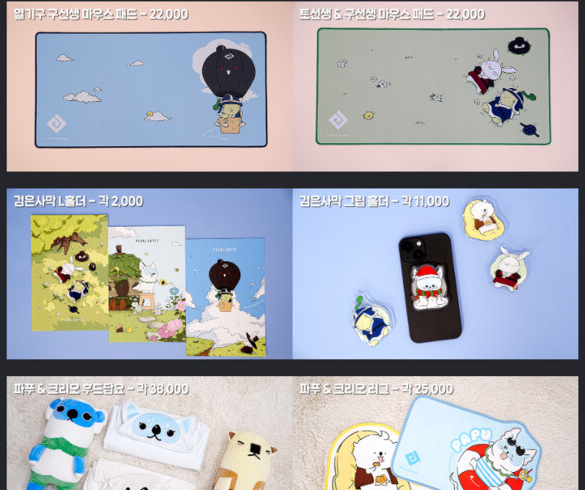 신규 굿즈로는 열기구 구 선생 마우스 패드, 파푸&크리오 후드담요, 검은 사막 레디백, 흑정령 손목 쿠션, 아침의 나라 윷놀이 세트, 파푸와 토선생이 그려진 후드 티셔츠 등이 판매될 예정이라고 합니다. 또한 이전 '검은 사막'의 오프라인 행사에서 판매됐던 일부 굿즈와 광복절 콜라보 패키지와 검은 사 마우스도 판매될 예정입니다.