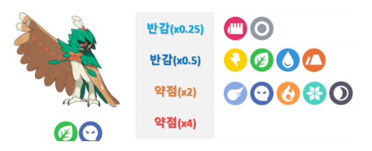 풀과 고스트의 조합은 타입상성상 괜찮은 조합입니다. 5개의 약점, 그리고 6개의 반감을 가지고 있습니다.