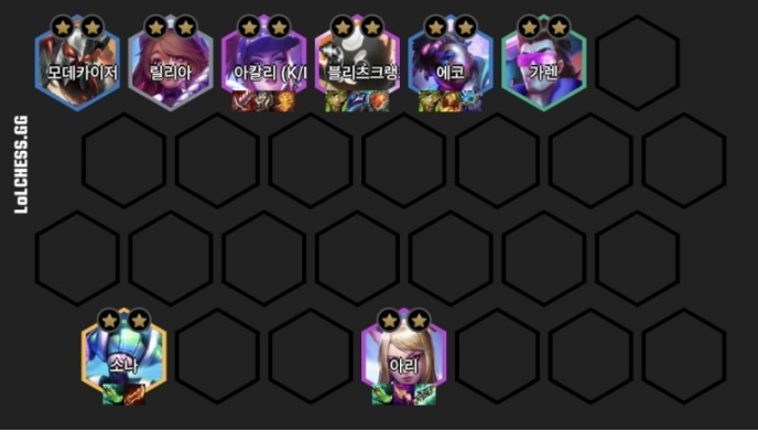 감시자 블츠 헤드라이너가 가장 좋고 KDA 아리나 주문술사 아리도 좋습니다. 주문술사라면 렙업 치고 5 주문받으시면 됩니다. 방템은 2 성작 된 거로 빌드업하시다가 블츠한테 넘겨주시면 됩니다.
