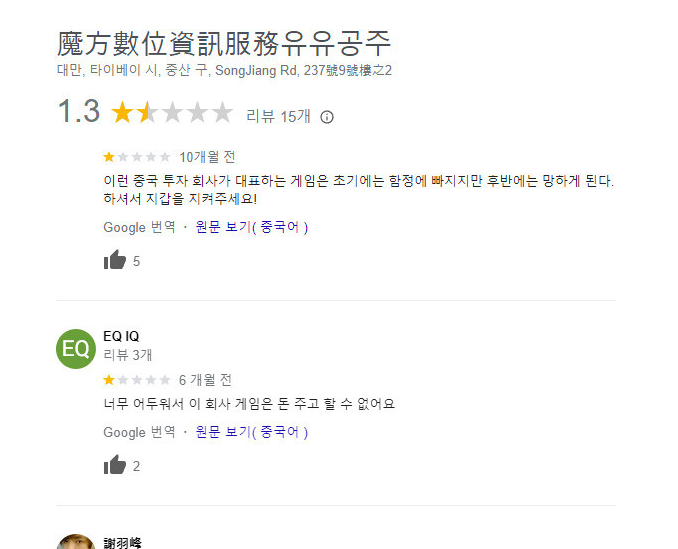 'JOY MOBILE NETWORK PTE. LTD.'이라는 키워드로 보면 이 회사의 도메인이 acentegame 닷컴이라는 것을 알 수 있습니다. 여기에서도 회사에 대한 내용은 찾아보기 힘듭니다. 회사 홈페이지의 서비스 약관에는 회사의 이름이 아이조이 디지털이며, 주소는 대만인 것을 알 수 있습니다. 한편 아이조이 디지털의 중국 명칭은 마방수위자신복무라는 회사입니다.
