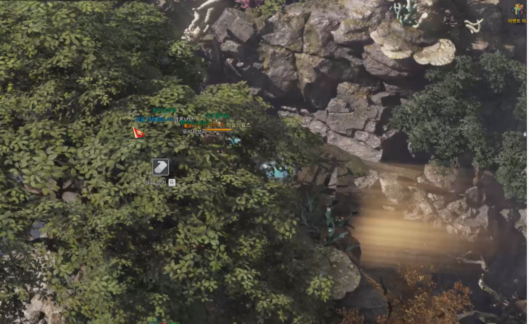 망가진 터 근처에 위에서 표시한 위치로 가시면 흰색 수풀 안쪽에서 물 뜨기라는 상호작용을 확인할 수 있습니다.