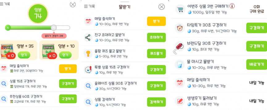 가끔씩 특가나 미션 이벤트가 나오는데 이때 내가 필요한 물품이 있어서 구매하는 경우 좋은 보상을 획득할 수 있기 때문에 퀴즈 특가와 같은 깜짝 이벤트를 챙겨보시는 게 좋습니다.