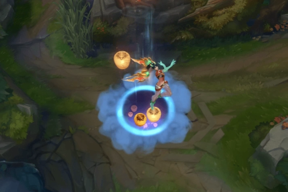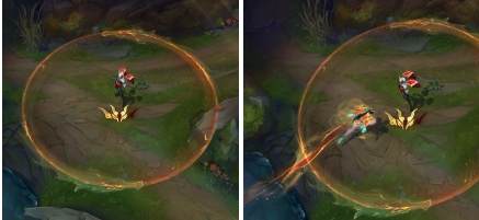 R스킬을 배워 적을 공격하면 주황색 원 테두리가 나타납니다.