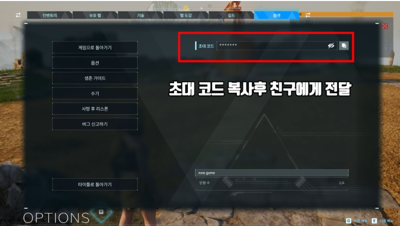 초대 코드 복사 후 친구에게 전달하시면 됩니다.