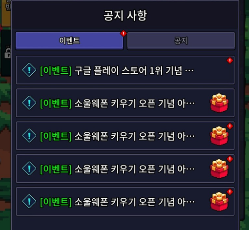 우편함에 있는 기본 보상을 다 받은 후 공지사항으로 이동해서 글을 하나씩 읽어보고 상자를 눌러서 추가 보상을 받으시면 됩니다.