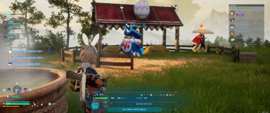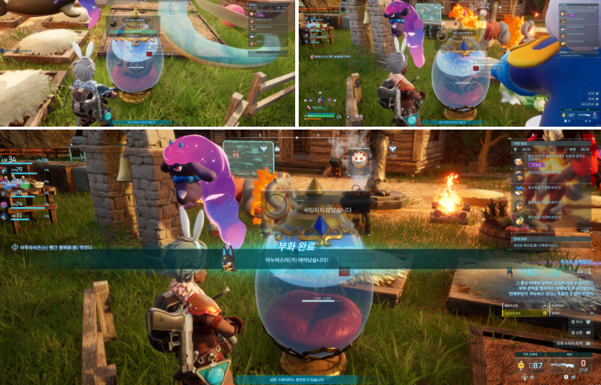 배합 목장의 재료는 목재 100개, 돌 20개, 섬유 50개이며 펭킹과 불무사를 잡아서 목장의 보금자리로 던져 놓으면 배합 중이라는 메세지가 뜹니다.