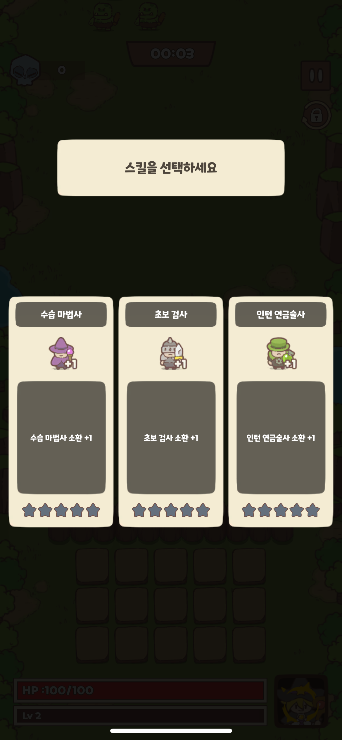레벨업하면 랜덤으로 스킬 3개가 뜨는데,