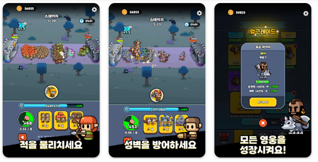 - 게임 방식: 타워 디펜스 + 영웅 수집형 입니다